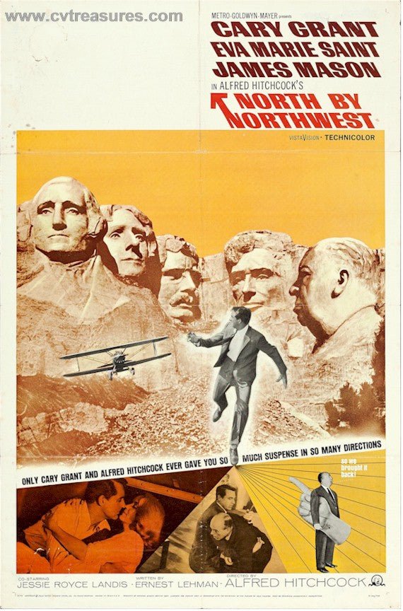 Alfred Hitchcock's North by Northwest Sci Fi Authentic Original Vintage Movie Theater Poster one sheet Cary Grant Guaranteed Authentic A++