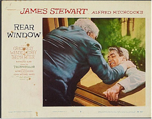 Rear Window Hitchcock Original Authentic Vintage Lobby Card movie theater poster - James Stewart "Killer scene"