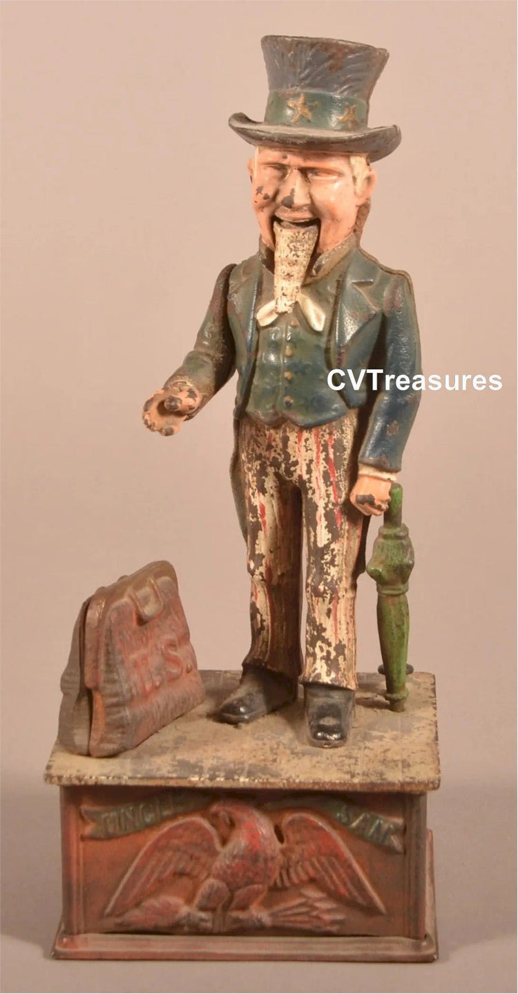 Uncle Sam Cast Iron Antique Mechanical Toy Bank Shepard Hardware