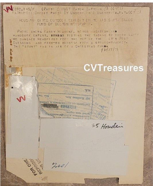 Harry Houdini ORIGINAL Authentic Vintage LIVE Escape TYPE I Photo 1922 Historical Photograph Guaranteed Authentic