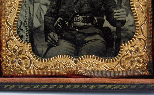 Civil War soldier 1/4 Plate Tin Type brass, bayonet
