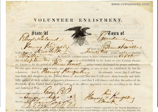 ORIGINALAuthentic Civil War Enlistment Letter Black Soldier 1863