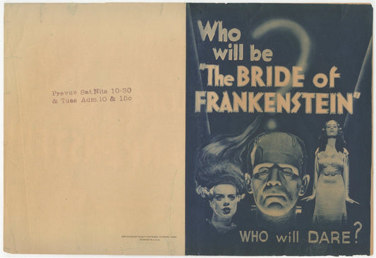 BRIDE OF FRANKENSTEIN Original Vintage Horror Movie Herald Boris Karloff Elsa Lanchester 1935