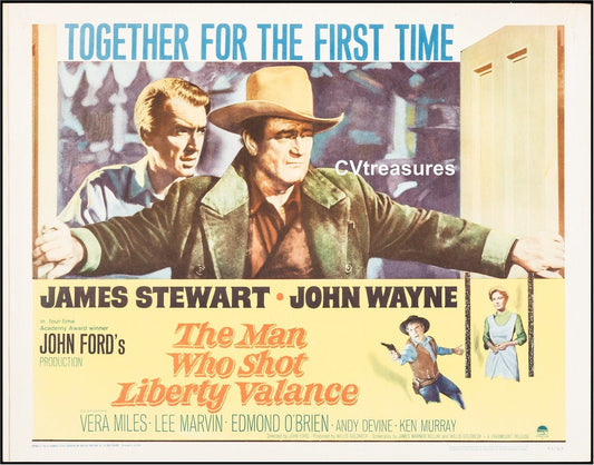 Man Who Shot Liberty Valance Original Authentic Vintage Half Sheet Movie Theater Poster John Wayne James Stewart