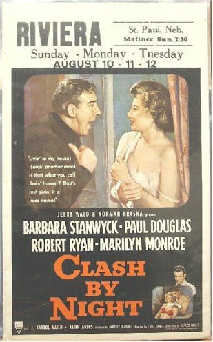 Clash By Night, 1952, Marilyn Monroe, Window Card movie poster