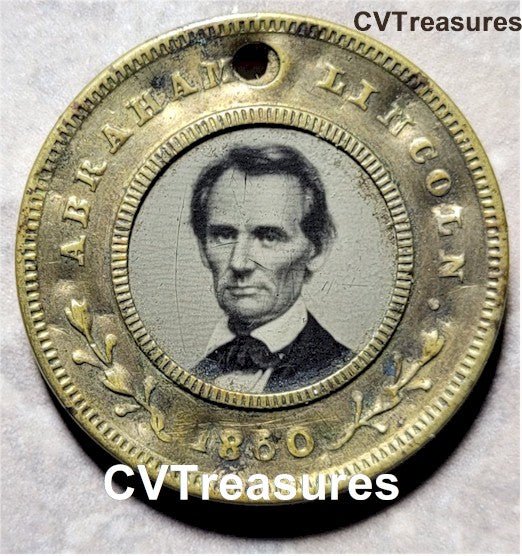 Abraham Lincoln Memorabilia Hannibal Hamlin Superb 1860 Campaign Button Token Historical Photo Civil War Guaranteed Authentic