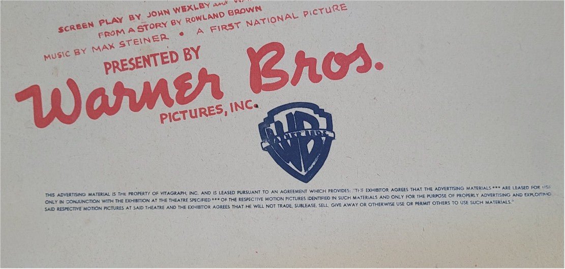 This is an extraordinary piece of Hollywood history. A stunning one sheet movie poster for this James Cagney “Gangster” classic. It also features a relatively little known Humphrey Bogart. What is also amazing is that this is exactly the same artwork as the original 1938 release. The only difference is a “RERELEASED” stamp under the credits. We have not found this particular one sheet “Rerelease” ever appearing on the market prior to this (please let us know otherwise). The opinion from a number of collectors and dealers we have spoken to is that this IS actually a 1938 poster with a "Rerelease" stamp. Or the same 1938 plate was used. This particular poster was re-used in the early 1940’s. The 1938 one sheet sold in July 2009 for $13,145.