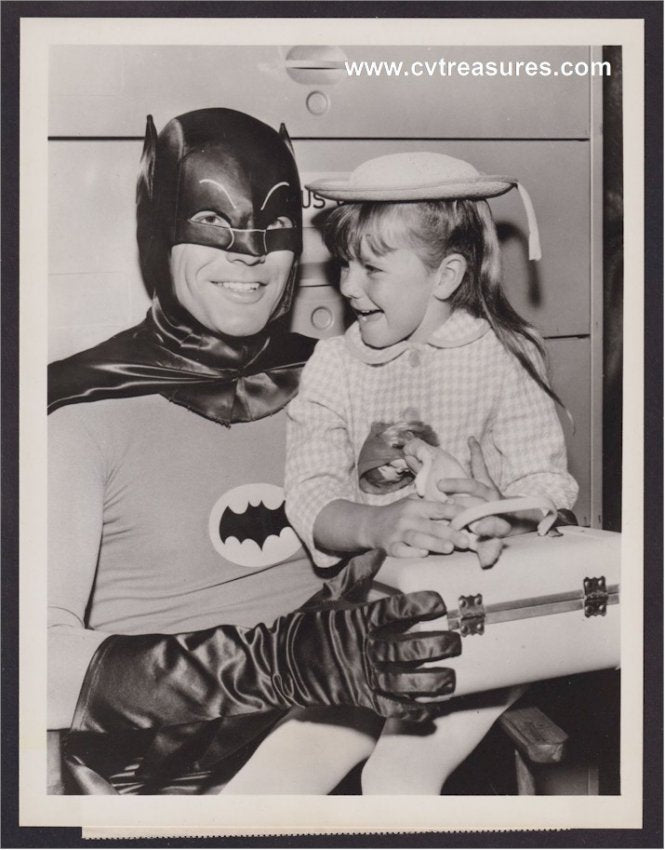 Original ABC Photo Division Press Release photos are extremely scarce and very few have surfaced on the market. This close up Adam West as “Batman” with young TV child star Tammy Locke is a beauty ! Extraordinary provenance on back includes studio stamp, dates and notations.
