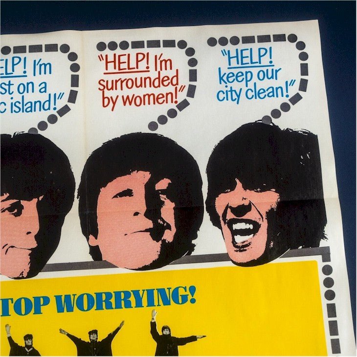 *NOTE: We have second “HELP” One sheet that has been professionally linen backed. See our other vintage Beatles Treasures, like an Authentic Original 1968 “YELLOW SUBMARINE” Vintage One Sheet movie Poster, in our Beatles Collection Gallery, HERE.