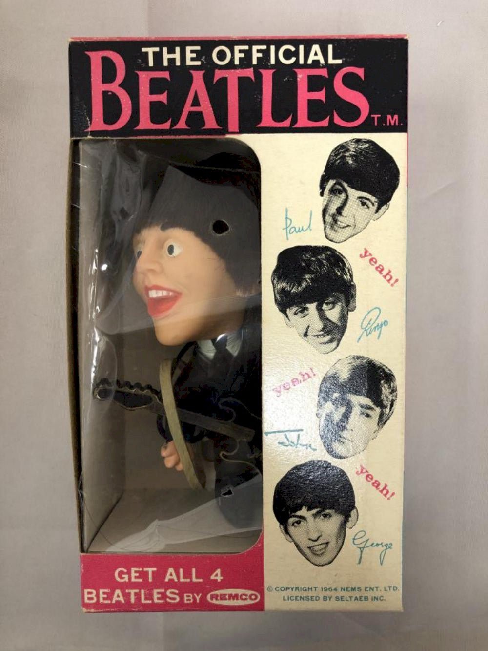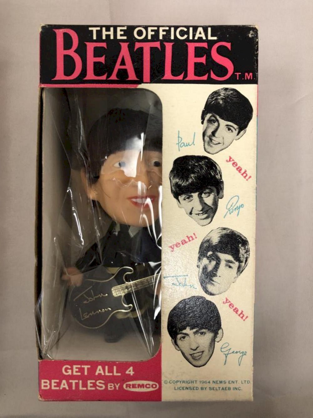 Condition: John has a small 2" tear in the cellophane. Like 80% of these 1960s boxed figures the elastic in the Paul figure came off so he is not fastened in the box like the other three are. The cellophane for Paul is partially loose from the box but it is all there. The boxes are in amazing NM condition.