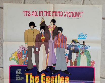 1968 - Yellow Submarine one sheet. The art work on this original vintage Beatles movie poster is beautiful and our personal favorite. Very difficult to acquire as it is the first we have found in five years. This poster is 100% Original Un-Restored. . What is also nice about that is on the back is the visible original studio NSS stamp which many collectors like to see for that additional layer of authenticity. It has been about 8 years since we had this Beatles treasure!