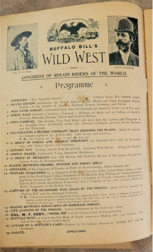 Note: These are some of the earliest surviving Buffalo Bill Wild West Show programs that we have ever acquired since we started collecting historical artifacts in 1980. Most that appear on the market are from the early 20th century.