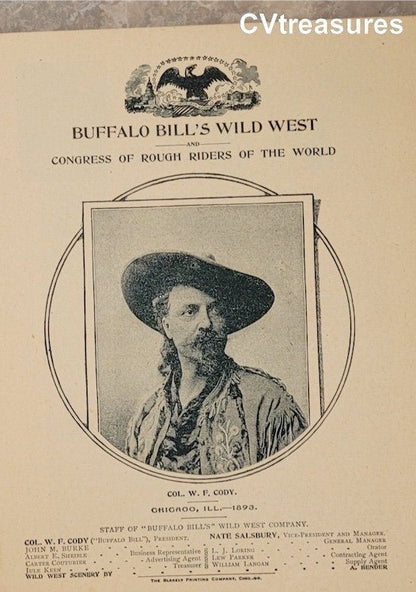 Buffalo Bill Cody Antique Official Wild West Show Program 1893 B Historical Western Memorabilia