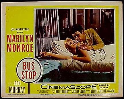 Super nice lobby card from the 1956 Marilyn Monroe classic, "Bus Stop". Great scene with Monroe and Murray. Excellent condition.