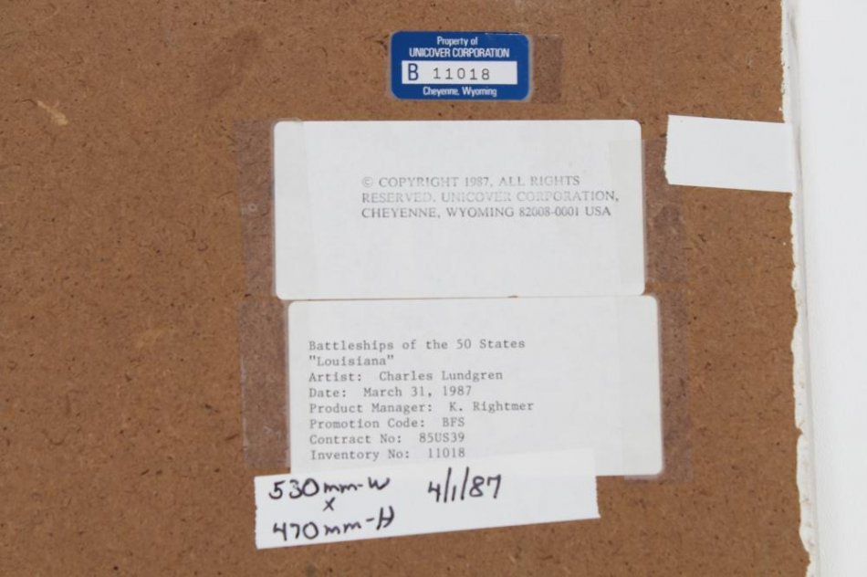 Note: Very few original Charles Lundgren's paintings appear on the market. Most of what you will see are prints and lithographs of his paintings. This Original painting was actually used for the Naval USS Louisiana FDC Cover issued in 1987.