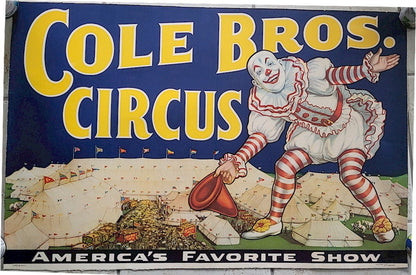Circus Poster Original Vintage Cole Bros Circus Clown Art 1940