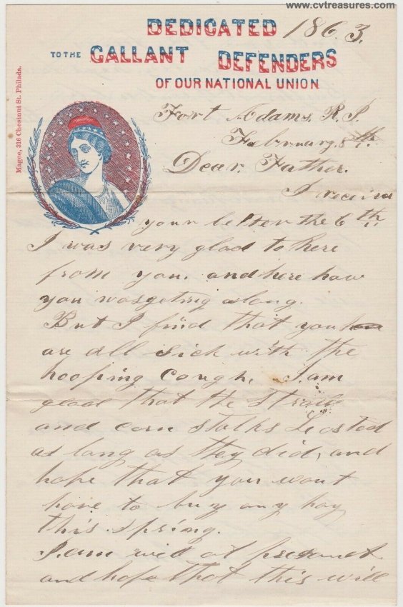 Civil War Letter Fort Adams, Newport, RI, 1863
