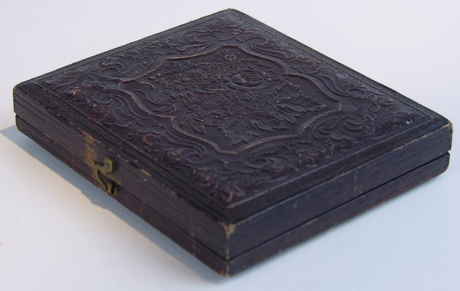 This wonderful, 1860's Sixth Plate Tintype Photo is in very good condition. The Image is strong and exhibits razor sharp focus and good contrast and tonality. There is no significant damage to the emulsion – on scratches, chips, flaking or scuffs, however there is some light crazing to the surface. The surface, however, is stable and sound. Overall the Tintype is very well preserved and displays nicely. As mentioned above, the Tintype is housed in a full, pressed leather covered hard case that is intact and sound with no repairs at the spine or otherwise and with light edge wear.