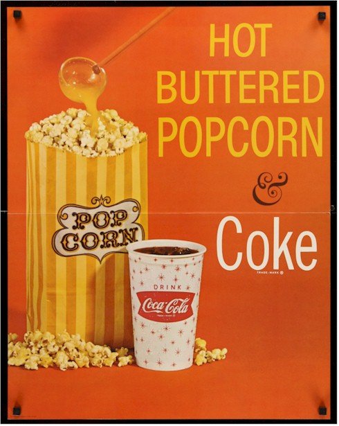 COCA-COLA HOT BUTTERED POPCORN 60s Posters & Lobby displays