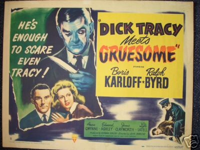 1947 - Great Original Vintage Half-sheet from this Dick Tracy classic staring Boris Karloff as "Gruesome". Very good condition. RARE Rolled - NEVER FOLDED like most half sheets.
