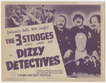 Dizzy Detectives 3 Three Stooges Original Authentic Vintage Title Lobby Card Movie Theater Poster Stooges memorabilia