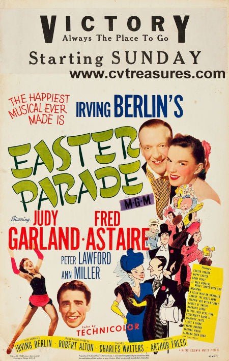 Starring Judy Garland, Fred Astaire, Peter Lawford, Ann Miller, Jules Munshin, Clinton Sundberg, Hector and His Pals, Lola Albright, Gail Langford, and Joi Lansing. Directed by Charles Walters. An unrestored window card that displays signs of use.