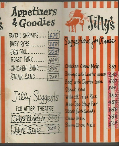 - Jilly's Restaurant is mentioned twice in his and Sammy Davis Jr.'s song "Me and My Shadow".