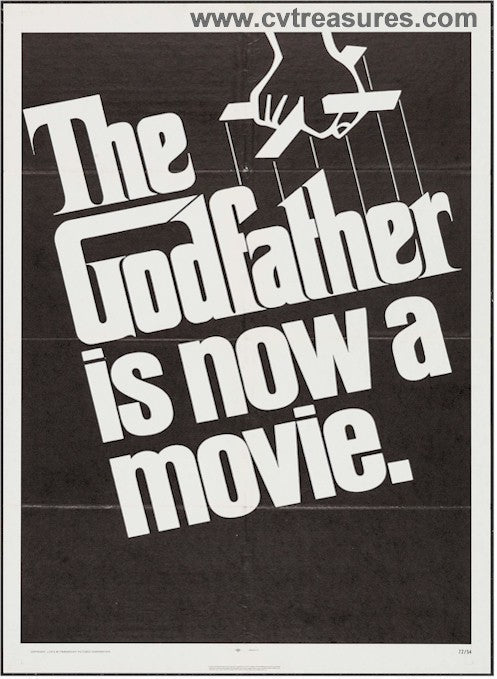 1972 - "Godfather" - ORIGINAL Very RARE ADVANCE one sheet. This is one of two Advance one sheets from this title we have ever acquired. We have seen only a few, they are extremely rare. Advance one sheets came out before the movie's actual release and before the promotional one sheets which we also have for sale... This may be your only chance to own this treasure!!