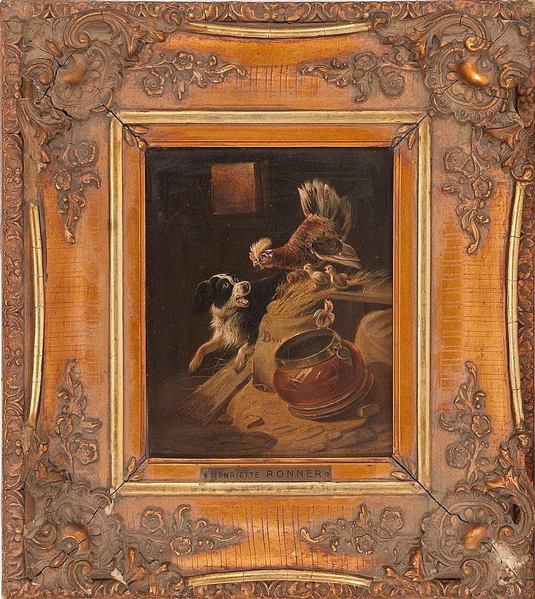 The daughter and pupil of Neo-Classicist painter Josephus August Knip, Henriette Ronner-Knip (1821-1909) gained notoriety early on as a landscape and still-life painter. Her long and prolific career began with her first exhibition in Germany at the age of fifteen. By 1852, her work appeared regularly at the Paris salons and throughout England.