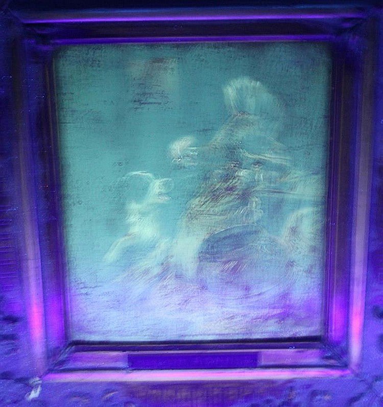 Condition: Very slight amount of surface dirt and varnish residue to panel, no obvious mars or damages noted under blacklight. Size with frame 16" x 14.5". Without frame : 8.5" x 7".