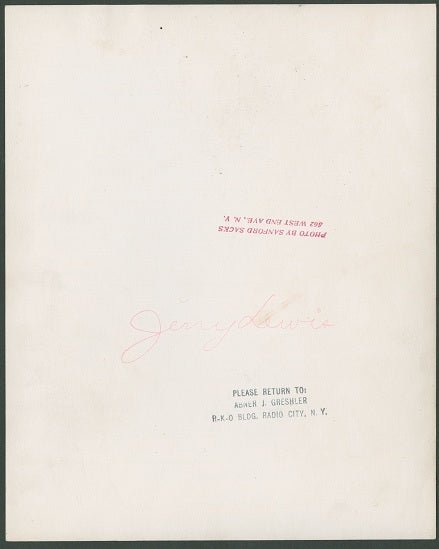 Jerry Lewis by Sanford Sacks (James Kollar Studios, 1940s). Portrait (8" X 10").