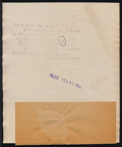 Has extraordinary Provenance on the reverse with Original News/Press Release Stamp, date and snipe.