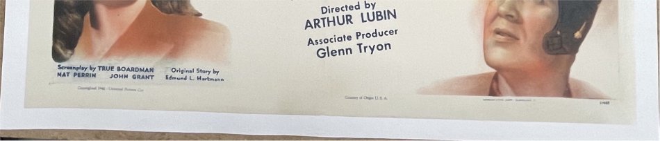As a collector of Abbott & Costello since 1980, I have ONLY seen the 1953 Re-release one sheets for this title, NEVER an original 1941 One Sheet. With Gorgeous vintage movie art of larger than life images of Bud and Lou and WWII fighter planes flying above, this is the ONE that has eluded Abbott & Costello collectors.
