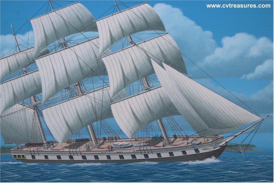 Stunning Nautical oil painting of Schooner British Naval Frigate HMS Cornwallis with amazing detail, depth, colors and enchanting images of several crew members on deck! A real beauty ! Unframed.