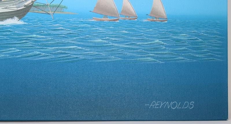 A review in the Baltimore Sun said, "Mr. Reynolds paints clean, highly detailed portraits of turn-of-the-century and modern yachts poised starkly before a blend of sea and sky....his sleek craft seem to cut through like a knife."