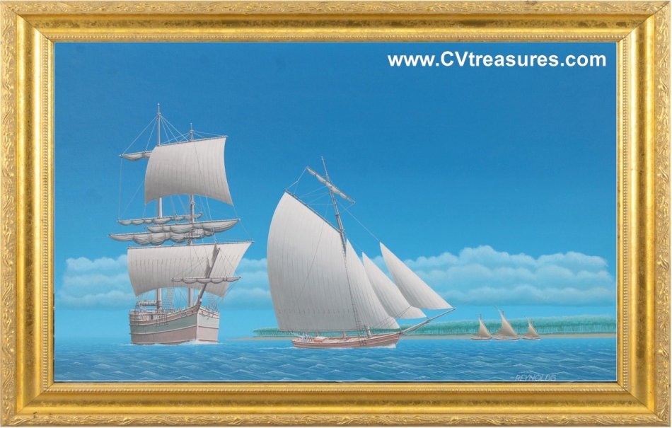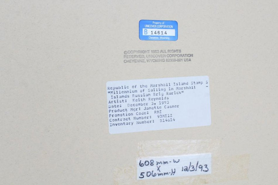 Note: Very few original Keith Reynolds paintings appear on the market. Most of what you will see are prints and lithographs of his paintings. This Original painting was actually used for the Marshall Islands Russian Brig Rurick stamp issued April 19, 1994.