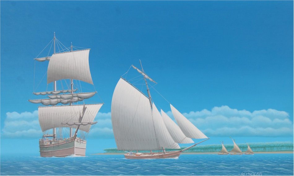 *A review in the Baltimore Sun said, "Mr. Reynolds paints clean, highly detailed portraits of turn-of-the-century and modern yachts poised starkly before a blend of sea and sky....his sleek craft seem to cut through like a knife."