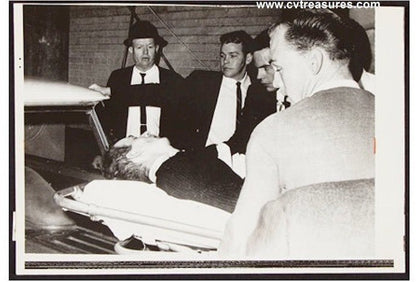 Rare Extraordinary Original Photo of Oswald after being shot by Jack Ruby being wheeled into an ambulance. A rare photo we've never seen before. Guaranteed TYPE I (taken and produced at the time of the event, NOT a later reprint). Has original photographer date stamp and press caption on back.