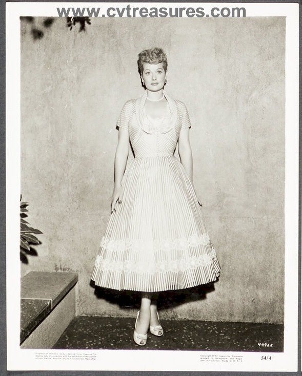 Simply stunning vintage Lucille Ball Metro-Goldwyn-Mayer studio photo from early in her career, 1954. One of the nicest photos we’ve acquired on Ball in 42 years collecting ! Gorgeous Full body shot! Very good-excellent condition with a gorgeous slight vintage sepia toning.