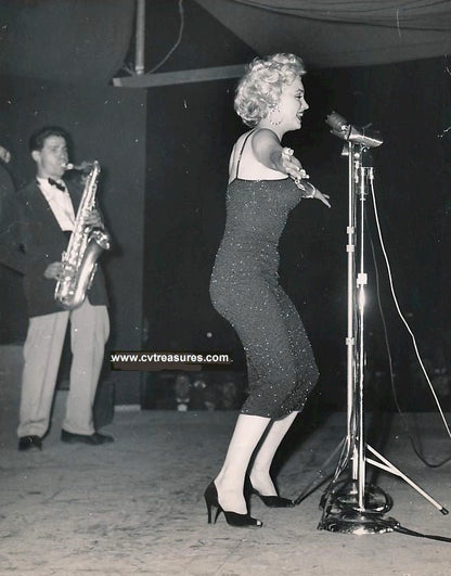 SUPERB 1954 Original Historic Photo MARILYN MONROE - ENTERTAINS The TROOPS in KOREA HELLO BOYS !