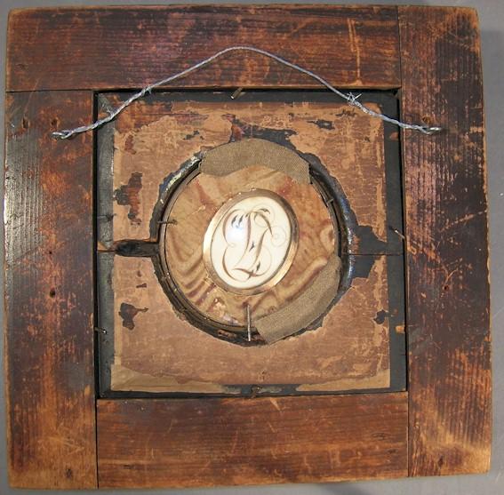 The back of the frame has the monogram initials (believe “FJB”) from hair mixed with glue rather then ink (another artist trait from the 17th/18th century).