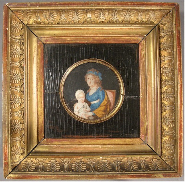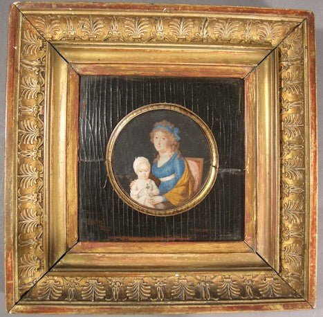 Mother & Child 18th Century Miniature Antique Fine Art Oil Portrait Painting
