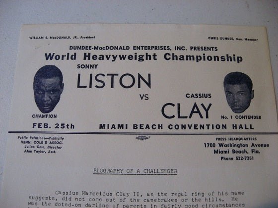 Muhammad Ali (Cassius Clay) vs Sonny Liston Press Letter 1964