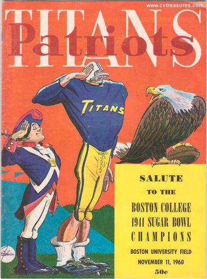1960 Boston Patriots vs Titans at Boston Field, AFL football game original program, November 11, 1960