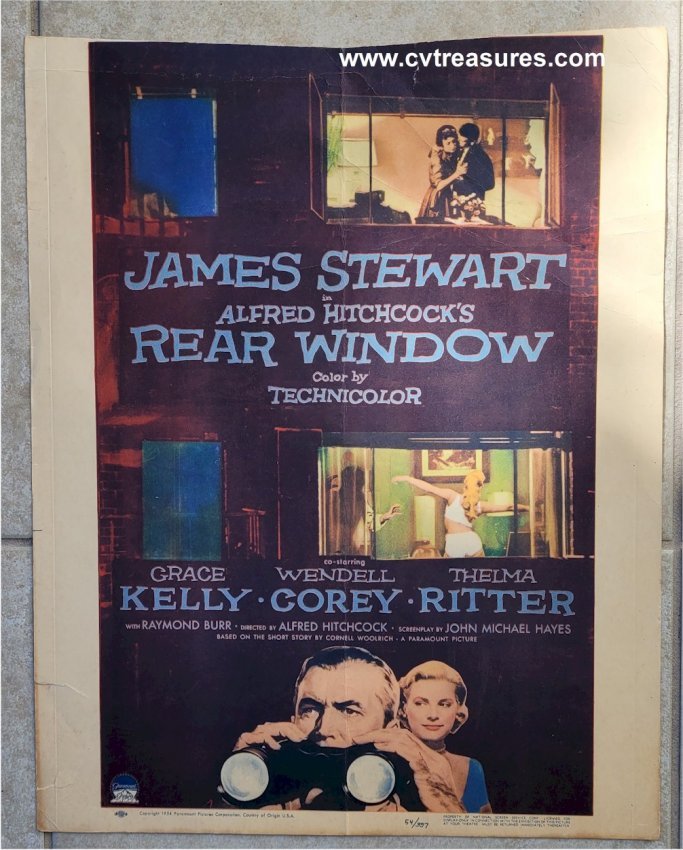 Original Vintage Movie Poster Window Card REAR WINDOW Alfred Hitchcock James Stewart Grace Kelly
