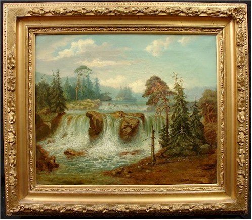 Spectacular Waterfall Oil on Canvas Late 19th Century