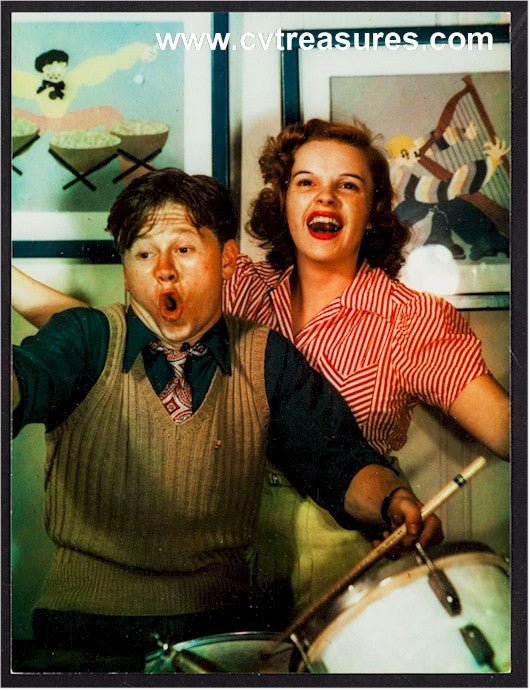 Vintage color, double weight, glossy finish photo. Starring Mickey Rooney, Judy Garland, Paul Whiteman and Orchestra, June Preisser, William Tracy, Ann Shoemaker, Margaret Early, and Larry Nunn. Directed by Busby Berkeley. An unrestored photo with bright color and a clean overall appearance. It may have general signs of use, such as slight edge wear, or corner bumps. This photo is from the set of the film Strike Up the Band and was taken by renowned LOOK Magazine photographer Earl Theisen. And has his photographer stamp on the back.