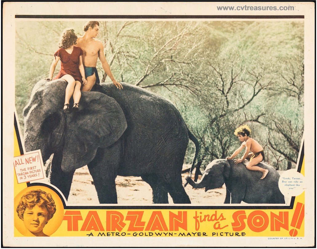 If ever there was a more desirable Tarzan lobby card, this is it! What better image of Tarzan than with his lady, son and elephants. Note: Whether its Tarzan or vintage Circus Posters, it seems most collectors want Elephants ! A Rare vintage 1939 lobby card. This is the first time we’ve seen this lobby card, and based on our research the FIRST time this RARE vintage card has ever appeared on the market.