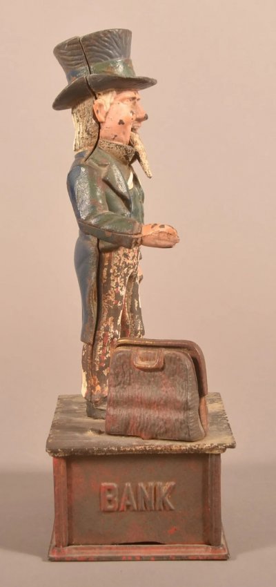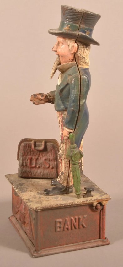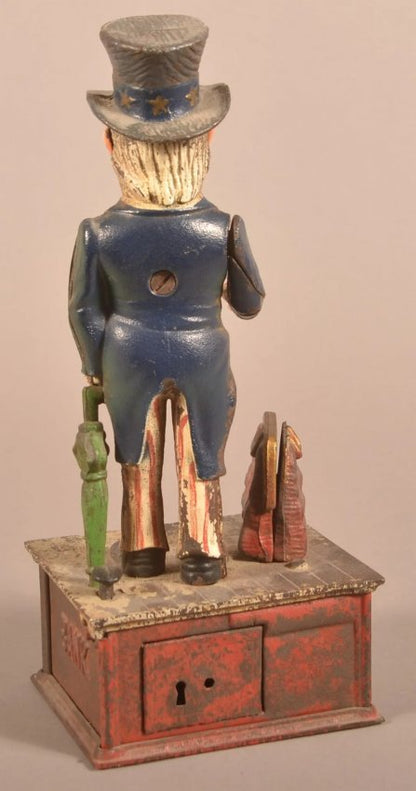 Very Rare and original,working 1886 Cast Iron Mechanical Bank by Shepard Hardware of Buffalo, New York titled the "The Uncle Sam Bank" in outstanding, original surface paint