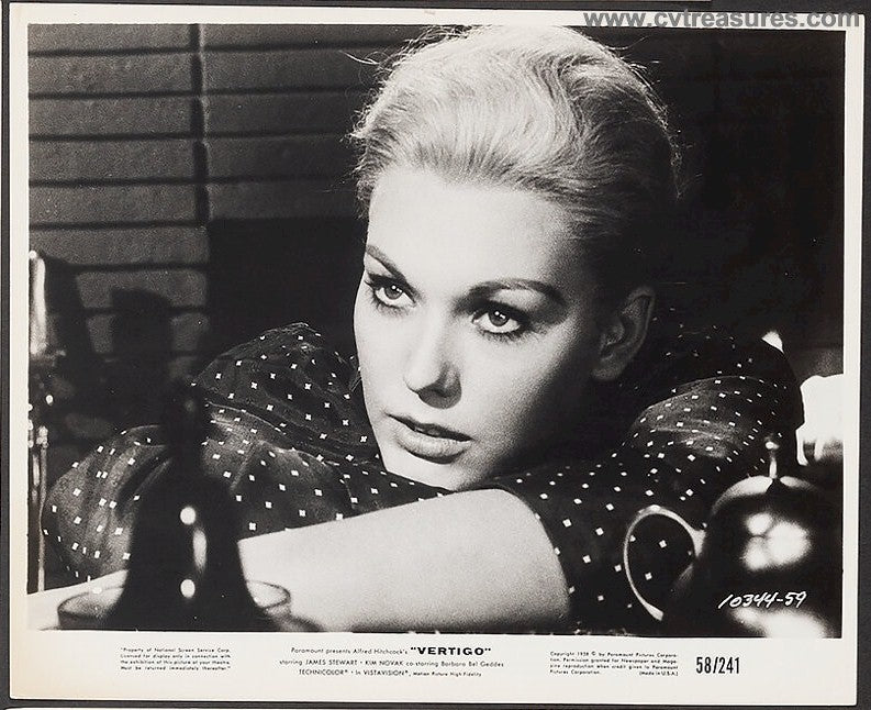 These are actual Original Promotional still photos issued by Paramount to promote this Hitchcock classic in 1958. Each photo has the Copyright, date and paramount release on bottom. These are NOT reproductions but original TYPE 1 1958 photos. Ths particular photo is a stunning Rare great close up of Kim Novak.